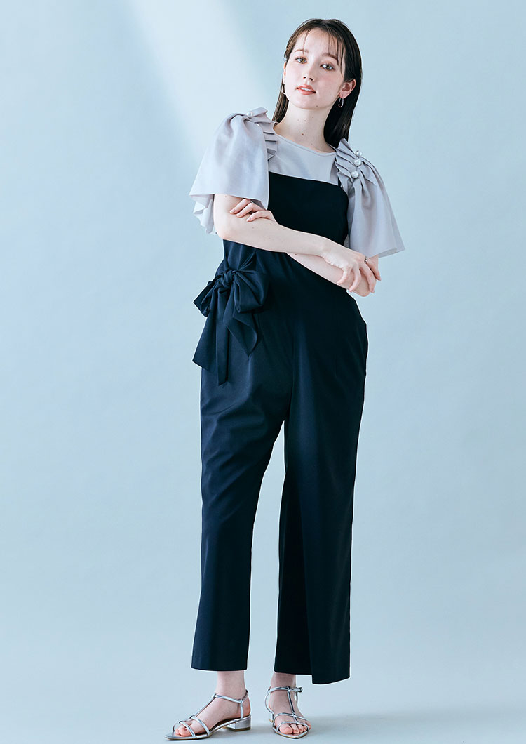 胸元のリボンタイは取り外し可能なので、お手持ちのアクセサリーを合わせても◎